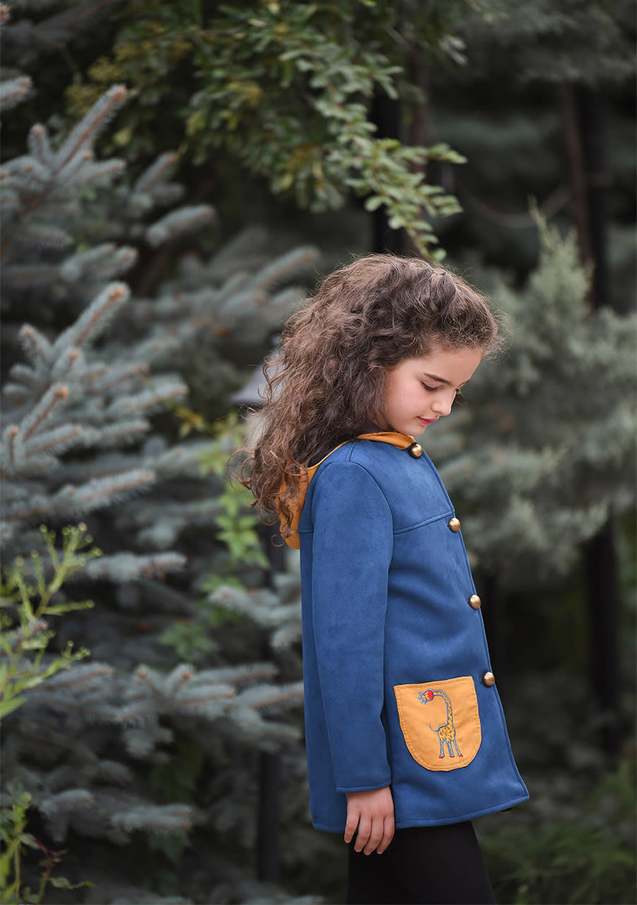 The charm of an old-time coat and a giraffe sewn on the pocket take the imagination beyond the wardrobe that separates reality from the dreamy world of Narnia.
