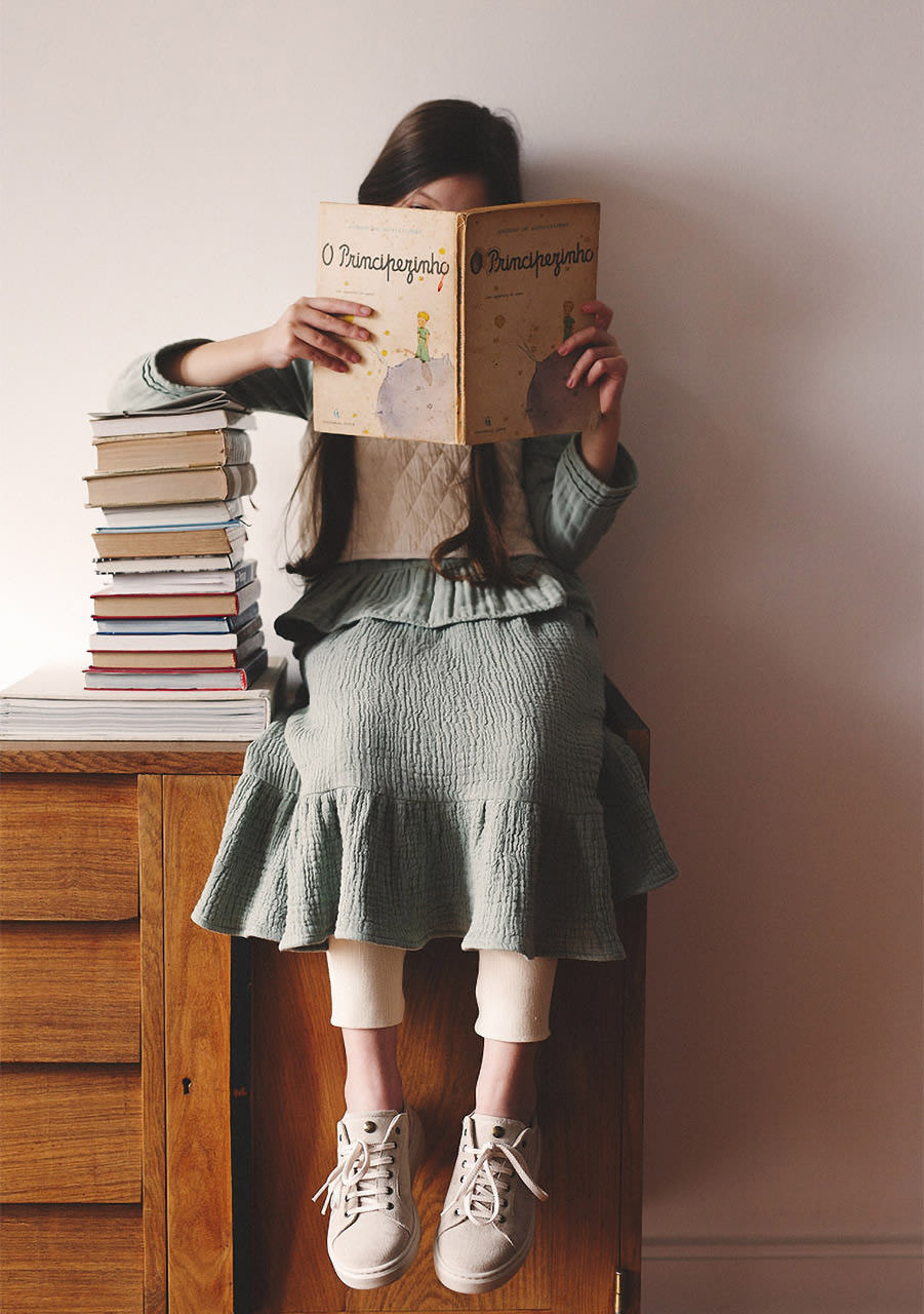"Ex libris" is the inspiration for this collection made with natural fabrics and dyes. For little readers ready to bring new dreams to life.